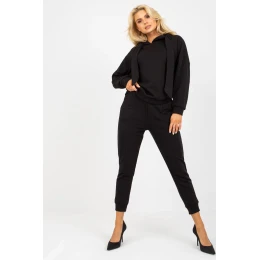 Tepláková súprava pozostávajúca z mikiny a nohavíc. Mikina s dlhými rukávmi a kapucňou. Tepláky so širokým elastickým pásom a vreckami na bokoch.