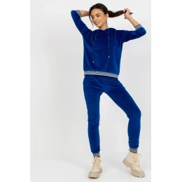 Dámska velúrová súprava pozostávajúca z mikiny a nohavíc. Blúzka s 3/4 rukávmi a kapucňou. Dlhé nohavice so zaväzovaním v páse a nakladanými vreckami. Súprava je zakončená rebrovanými manžetami s ozdobnou potlačou.