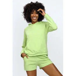Súprava Koko obsahuje mikinu s dlhým rukávom a kapucňou. Je vyrobená z hladkého materiálu, nemá zips a má veľké vrecko. A pár krátkych teplákov, ktoré sú vyrobené z hladkého, príjemného materiálu. Majú dve vrecká na prednej strane nohavíc a sú elastické. Tepláky DKaren sú vyrobené z vysokokvalitných materiálov a sú k dispozícii v mnohých farbách a štýloch. Či už hľadáte jednoduché oblečenie na tréning alebo sofistikovanejšie na doma, DKaren má pre vás ideálne tepláky.