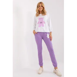 Mikinový set pozostávajúci z mikiny a nohavíc. Mikina s dlhými rukávmi a okrúhlym výstrihom. Dekoratívna potlač medvedíka na prednej strane. Dlhé nohavice so zaväzovaním v páse a vreckami.