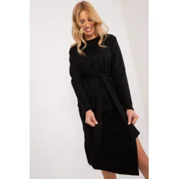 Tato ležérní kombinace svetru a šatů je ideální pro různé každodenní situace, od práce až po setkání s přáteli. Díky jejich jedinečnému designu a kvalitním materiálům se budete cítit pohodlně a stylově. Kardigan s dlouhými rukávy je vyroben převážně z měkké a na dotek příjemné angory, která zajišťuje nejen teplo, ale také pohodlí při nošení. Je vybaven páskem na zavazování, který dodává lehkost a eleganci a zároveň zvýrazňuje pas. Šaty v délce ke kolenům, vyrobené ze stejného materiálu jako svetr, jsou dokonalým doplňkem tohoto kompletu. Jejich elegantní design jim dodává univerzální charakter, který se hodí k mnoha outfitům. Šaty bez rukávů a s kulatým výstřihem poskytují volnost pohybu a dodávají celému vzhledu lehkost. Díky délce ke kolenům se šaty hodí pro mnoho různých příležitostí, jak formálnějších, tak ležérnějších. Tato kompletní kombinace svetru a šatů bude ideální volbou pro mnoho různých př