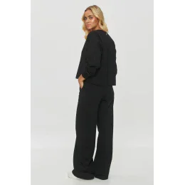 Dresová sada je ideálním návrhem pro lidi, kteří ocení pohodlí a styl v každodenních, neformálních outfitech. Dres se skládá z volného svetru a širokých kalhot, což zaručuje maximální pohodlí nošení. Celý kus je vyroben z měkkého, příjemného na dotek materiálu, který se ideálně hodí na chladnější dny. Svetr má klasický, jednoduchý střih s dlouhými rukávy a mírně spuštěným ramenem. Je dokončen kulatým výstřihem. Kalhoty mají široké nohavice, což dává celkovému vzhledu trendy, oversized charakter a šev podél nohavic opticky prodlužuje nohy. Elastický pás v pase zajistí pohodlné přizpůsobení. Tento set se ideálně hodí na každodenní výlety, nákupy nebo setkání s přáteli. Tento set je kombinací funkčnosti a stylu, ideální pro lidi, kteří chtějí být pohodlní, aniž by se vzdali módního vzhledu.