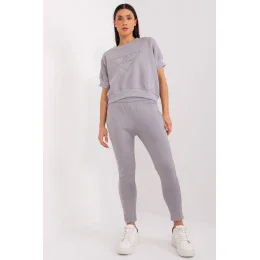 Zateplená dámská tepláková souprava v ležérním stylu, ideální pro chladnější dny, se skládá z mikiny a kalhot. Souprava je vyrobena z kombinace bavlny a polyesteru, poskytuje teplo, pohodlí a odolnost a je ideální pro každodenní nošení. Mikina standardní délky má krátké rukávy a kulatý výstřih, díky čemuž působí navzdory hřejivosti lehkým a ležérním dojmem. Na přední straně mikiny je módní potisk, který soupravě dodává originalitu a mladistvý nádech. Hladký design zachovává minimalistický, univerzální vzhled, který lze snadno kombinovat s dalšími kusy oblečení. Kalhoty mají zúžené nohavice a vysoký pas, který zvýrazňuje siluetu a zajišťuje pohodlí. V pase je elastický pásek, který zaručuje dokonalé přizpůsobení. Kalhoty jsou navíc vybaveny postranními nakládanými kapsami, takže jsou praktickou volbou pro každodenní nošení. Tato souprava je dokonalou kombinací pohodlí a stylu pro chladné všední dny.