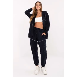 Dámske oblečenie v ležérnom štýle, ideálne na každodenné príležitosti. Vyrobené z bavlny s prídavkom elastanu poskytuje pohodlie a voľnosť pohybu. Mikina na zips má praktickú kapucňu a vrecká a jemná potlač dodáva celku módny nádych. Nohavice s dlhými nohavicami zakončené zapínaním na patentky majú vysoký pás a šnúrku v páse pre ideálne prispôsobenie. Bočné vrecká sú praktické a pohodlné. Skvelá voľba pre ženy, ktoré ocenia štýl a pohodlie v jednom.