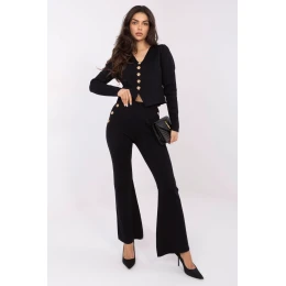 Táto dámska súprava svetra a nohavíc je štýlovou ponukou pre ženy, ktoré oceňujú eleganciu a pohodlie v každodennom štýle. Je vyrobená z mäkkej zmesi viskózy a polyesteru a očarí svojou hladkou štruktúrou a pohodlným strihom. Sveter s výstrihom do V zapínaný na gombíky jemne zdôrazňuje ženskosť, zatiaľ čo nohavice s vysokým pásom a širokými nohavicami zaručujú pohodlie a módny vzhľad. Elastický pás zaručuje ideálne prispôsobenie a ozdobné gombíky v hornej časti nohavíc zvyšujú celkovú eleganciu. Táto súprava je ideálna na každodennú prácu, ako aj na elegantnejší štýl.
