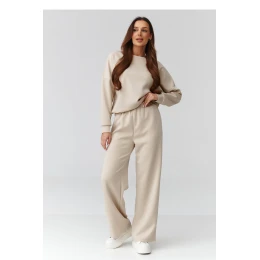 Elegantná a pohodlná dámska súprava jednej veľkosti, ktorá je ideálna na každý deň, do domácej kancelárie, na prechádzku alebo na výlet. Súprava sa skladá z voľnej mikiny s dlhým rukávom a širokých nohavíc, ktoré zaručujú maximálne pohodlie a módny vzhľad. Súprava je vyrobená z mäkkého, na dotyk príjemného materiálu, ktorý dobre sedí na tele a neobmedzuje v pohybe. Univerzálny strih sa prispôsobí rôznym typom postavy. Dostupné farby dodávajú sviežosť a dokonale ladia s aktuálnymi trendmi. Vyrobené v Taliansku.