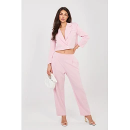 Elegantní dámský set skládající se z krátkého saka a dlouhých kalhot je skvělou volbou do práce i na každý den. Klasický, hladký vzor zdůrazňuje nadčasový charakter setu a pečlivě vybraná tkanina (polyester, viskóza, elastan) zajistí pohodlí, odolnost a estetický vzhled po celý den. Krátké sako s dlouhým rukávem je zakončeno límci, které mu dodávají eleganci a profesionální charakter. Dvojitý řadový knoflík přidává eleganci a jemně modeluje siluetu. Kalhoty s vysokým pasem krásně zdůrazňují pas a zúžené nohavice prodlužují nohy. Model bez klasického zapínání, s elastickým pásem na zádech, zaručuje pohodlí a ideální přizpůsobení. Dalším benefitem jsou praktické boční kapsy. Materiál typu butter je měkký, jemný a mimořádně příjemný na dotek. Jedná se o univerzální set, který kombinuje eleganci s pohodlím, ideální pro kancelář, obchodní schůzky a stylové každodenní vycházky.