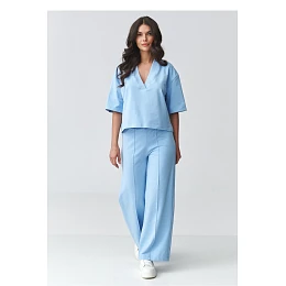 Elegantní dámský set s širokými kalhotami je ideální kombinací pohodlí a moderní elegance. Sada se skládá z volného topu s výstřihem ve tvaru písmene V a kalhot s širokými nohavicemi, které krásně prodlužují postavu a dodávají outfitu lehkost. Tento elegantní dámský set se hodí jak na každý den, tak na formální události. Je to skvělá volba do práce, na schůzku, procházku nebo výlet. Minimální střih umožňuje vytvářet různé stylizace, v sportovní verzi s teniskami nebo v elegantnější verzi s elegantní obuví. Volný střih topu zajišťuje pohodlí nošení a decentně zdůrazňuje výstřih, zatímco široké dámské kalhoty zaručují pohodlí a módní, nadčasový vzhled. Celkově vytváří souvislý volný dámský set, který spojuje pohodlí s elegancí.