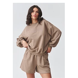 Elegantní dresový set je ideální kombinací pohodlí a moderního designu. Součástí setu je oversized mikina s jemným potiskem a volné dresové šortky. Skvělá volba pro ženy, které si cení módního dámského setu na každý den, jak pro relaxaci doma, tak pro výlet do města. Dámská dresová mikina je navržena ve volném střihu, který zajišťuje maximální pohodlí a volnost pohybu. Snížené ramena a pečlivě zpracované lemy zdůrazňují její ležérní charakter. Jemný potisk na přední straně dodává celku minimalistickou eleganci, zapadající do aktuálních trendů. Dresové šortky s vysokým pasem zaručují pohodlí a skvělé přizpůsobení postavě. Elastický pas a měkká, příjemná na dotek pletenina zajišťují, že set se skvěle hodí jako pohodlný dámský dres na teplejší dny. Tento oversized dresový set je must-have v šatníku každé ženy, která hledá univerzální a nadčasová řešení. Skvěle ladí se sneakersy, vytvářející módní sp