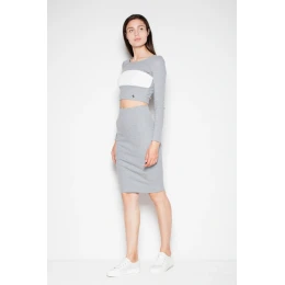 Bavlnená súprava. Top s dlhými rukávmi, ozdobným pásikom v kontrastnej farbe a klasicky strihanou ceruzkovou sukňou.