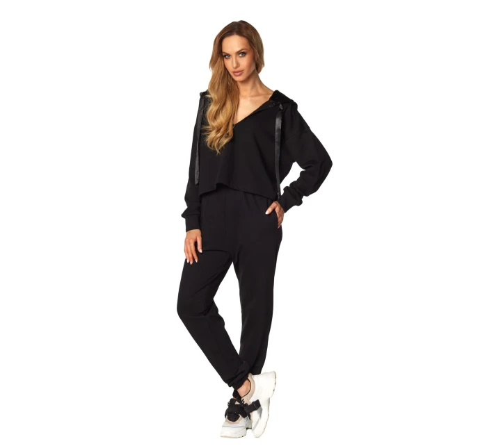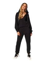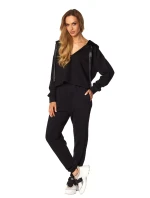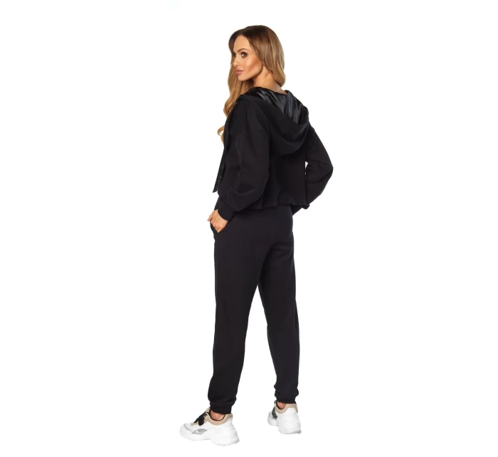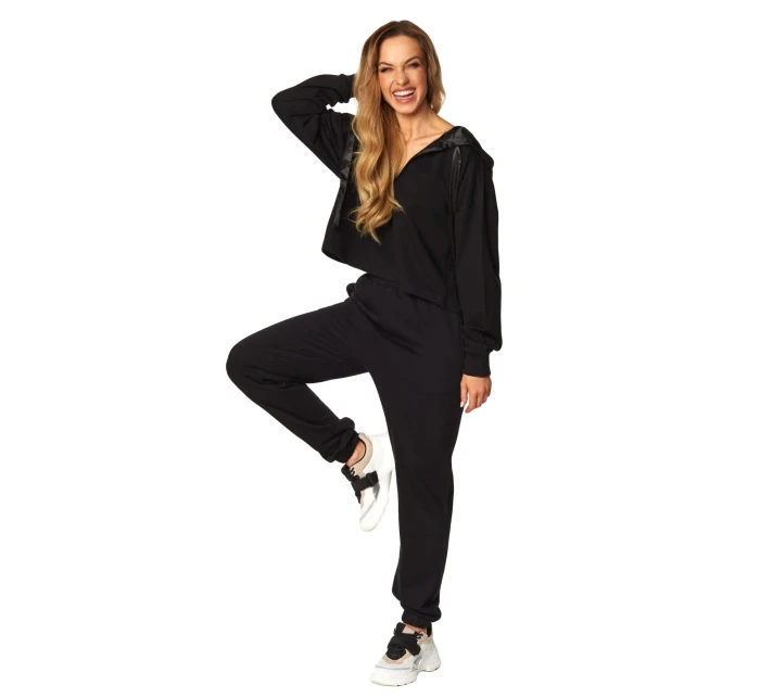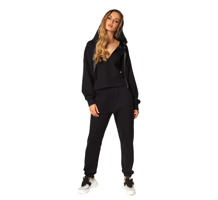 Skvělá dvoudílná souprava z vysoce kvalitní bavlny, která se rychle stane vaším oblíbeným kouskem šatníku. Měkké a velmi pohodlné, vybroušené do nejmenšího detailu a neuvěřitelně ženské. Vrchní díl je mikina s dlouhými rukávy a kapucí, která je podšitá krásným stříbrným saténem. Véčkový výstřih svůdně odhaluje půvaby. Dlouhé kalhoty s bočními kapsami, nohavice zakončené gumou. Klasická černá. Složení: 100% vysoce kvalitní bavlna.