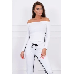 Predstavujeme súpravu mikiny a nohavíc. Súprava má nohavice s vysokým pásom. Blúzka z rebrovanej tkaniny. Dvojité lemovanie na nohaviciach a blúzke. Nohavice majú vrecká. Súprava je vyrobená z kvalitného materiálu. Veľkosť je univerzálna a vyhovuje dámam, ktoré nosia veľkosť S, M alebo L.