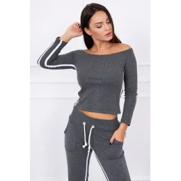 Predstavujeme vám sadu mikiny a nohavíc. Súprava má nohavice s vysokým pásom. Blúzka z rebrovanej tkaniny. Dvojité lemovanie na nohaviciach a blúzke. Nohavice majú vrecká. Súprava je vyrobená z vysoko kvalitného materiálu. Veľkosť je univerzálna a vyhovuje dámam, ktoré nosia veľkosť S, M alebo L.