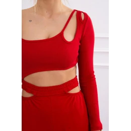 Predstavujeme vám sadu blúzky a nohavíc. Blúzka z rebrovanej tkaniny s dlhými rukávmi. Obyčajné nohavice bez vreciek. Súprava je vyrobená z vysoko kvalitného materiálu. Veľkosť je univerzálna a vyhovuje dámam veľkosti S, M alebo L.