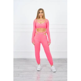Sada s halenkou top růžová neonová