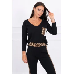 Predstavujeme vám sadu blúzky a nohavíc. Súprava má vložky s motívom pantera. Blúzka s vreckom na prednej strane. Nohavice majú vrecká. Súprava je vyrobená z vysoko kvalitného materiálu. Veľkosť je univerzálna a vyhovuje dámam, ktoré nosia veľkosť S, M alebo L.