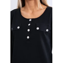 Sada s knoflíkovým výstřihem černé barvy