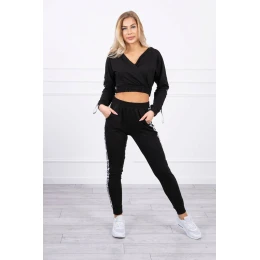 Představujeme vám sadu mikiny a kalhot. Mikina a kalhoty mají ozdobnou stuhu s nápisem. Ve spodní části mikiny je všitá guma. Kalhoty s kapsami. Velmi módní a stylová sada. Sada je vyrobena z vysoce kvalitního materiálu. Velikost je univerzální a vyhovuje dámám velikosti S, M nebo L.