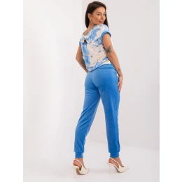 Rozmery súpravy vo veľkosti S merané na plocho: šírka blúzky v podpazuší - 49 cm, dĺžka blúzky - 58 cm, šírka nohavíc v páse - 33 cm, výška nohavíc v páse - 28 cm, dĺžka nohavíc - 95 cm.