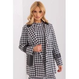 Dámska bunda s dlhými rukávmi a polstrovaným golierom. Sako je zapínané na gombíky a podšité. Bunda má našité vrecká. Bunda je vyrobená z peplum tkaniny s lemovaním z ekokože.