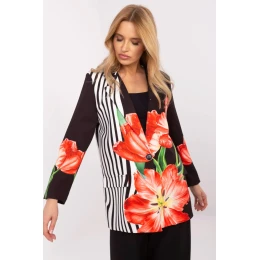 Tento klasický dámsky oblek je dokonalou kombináciou štýlu a pohodlia. Je vyrobený z ľahkej zmesi viskózy a polyesteru a skvele sa hodí na jar/leto. Štandardná dĺžka a dlhé rukávy mu dodávajú univerzálny charakter a jednoradové zapínanie na gombíky zvýrazňuje klasický strih. Jemná kvetinová potlač mu dodáva ženský šarm a robí z neho skvelú voľbu na každý deň. Sako má zabudované ramenné vypchávky, ktoré jemne tvarujú postavu, a podšívku na väčšie pohodlie pri nosení. Je ideálne na ležérny štýl, dobre sa kombinuje s nohavicami aj sukňami.