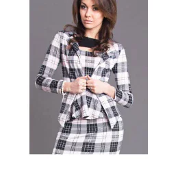 Dámske rozopínacie sako na mieru v ružovo-čiernej kockovanej farbe. Bunda je ideálna na vytvorenie mnohých zaujímavých outfitov.