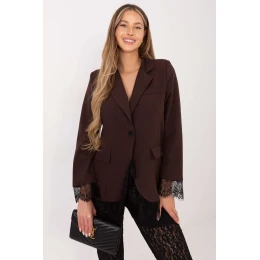 Elegantní dámský sako v nadčasovém, klasickém stylu, ideální na slavnostní události, do práce i na večírek. Hladký střih zdůrazňuje jeho univerzální charakter a jemné detaily dodávají celku výjimečnou eleganci. Model je vyroben z vysoce kvalitního polyesteru s přídavkem elastanu, co zajišťuje trvanlivost, pružnost a pohodlí nošení. Standardní délka a dlouhý rukáv zdobený jemnou krajkou se krásně kombinuje s krajkovým lemem dole na saku, dodávající mu ženský a stylový vzhled. Sako má jednořadé zapínání na knoflík a podšívku, která zvyšuje pohodlí nošení a dělá celkový vzhled dokonalým. Je to skvělá volba pro ženy, které chtějí spojit klasickou eleganci s jemnou dávkou romantiky.