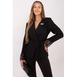 Elegantní dámský sako s klasickým a propracovaným střihem, ideální na formální příležitosti i do práce. Hladký vzor dodává saku nadčasový charakter, zatímco pečlivě vybrané detaily zdůrazňují ženskou eleganci. Model je vyroben z vysoké kvality polyesteru s přídavkem elastanu, co zaručuje pevnost, elasticitu a pohodlí nošení. Standardní délka a vestavěné ramenní polštářky krásně formují postavu a dávají saku elegantní tvar. Dlouhý rukáv s jemnou krajkou dodává celku decentní dekorativní akcent. Sako má jednořadé zapínání na knoflík a podšívku, díky čemuž se skvěle přizpůsobuje tělu. Další výhodou je pásek s krajkou, který umožňuje uvázání v pasu a zdůraznění ženských tvarů. Celkový dojem dokresluje odnímatelná brož, která umožňuje libovolnou stylizaci, ať už klasickou nebo ozdobnou. Jedná se o skvělou volbu pro ženy, které si cení elegance, funkčnosti a výjimečných detailů ve svých každodenních i formál