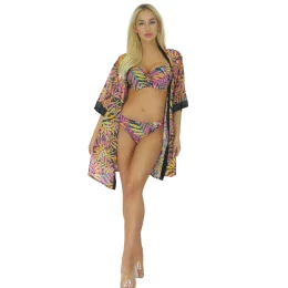 Plážové šaty 11D80SZ 38 SELF - čierne - vyrobené z jemnej vzdušnej tkaniny - so vzorom - trojštvrťové rukávy - odolné voči UV žiareniu - nemačkavý materiál