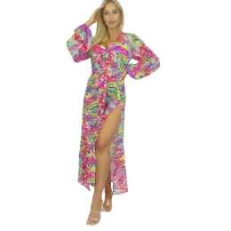 Pareo šatka 14D81SZ 32 SELF - ružová - z mäkkej vzdušnej tkaniny - so vzorom - odolná voči UV žiareniu - nemačkavý materiál - zaväzovanie v páse