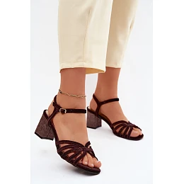 Sametové dámské sandály na podpatku model 22133812 bordó - D&A