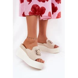 Klapki Na Platformie I Koturnie Z Ozdobą Beżowe Tanonea