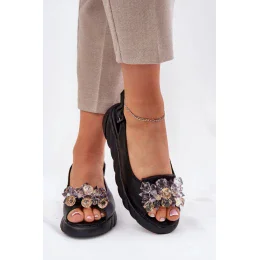 Tieto elegantné dámske sandále z prírodnej kože sú skvelou voľbou na letné dni. Sú osadené na platforme a poskytujú pohodlie a stabilitu počas celého dňa. Na prednej strane sú kryštály, ktoré im dodávajú osobitý charakter. Zapínanie na pracku umožňuje ideálne prispôsobenie sa nohe. Mäkká stielka zaručuje pohodlie, vďaka čomu sú tieto sandále dokonalým doplnkom elegantného štýlu na teplé dni.