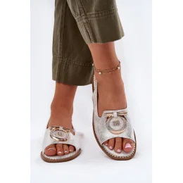 Tieto elegantné dámske sandále od značky S.Barski sú skvelou voľbou na teplé dni. Model je vyrobený z ekokože a je osadený na plochej podrážke, čo zaručuje pohodlie počas celého dňa. V prednej časti sandálov sa nachádza jemný ozdobný prvok, ktorý im dodáva výnimočný charakter. Zapínajú sa na pracku s nastaviteľným remienkom, čo umožňuje ideálne prispôsobenie nohe. Stielka z prírodnej kože zaručuje pohodlie a priedušnosť, vďaka čomu sú sandále ideálne na dlhšie nosenie.