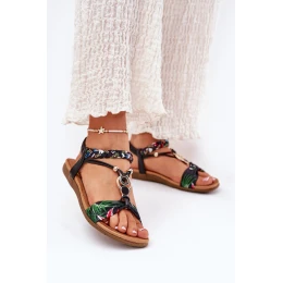 Tieto dámske sandále vyrobené z kombinácie ekokože a látky sú skvelou voľbou na teplé dni. Tento model má pletený remienok, ozdoby a trblietavé kamienky, ktoré mu dodávajú jedinečný šarm. Plochá podrážka a mäkká stielka zaručujú pohodlie počas celého dňa. Tieto sandále sa skvele hodia k letným štýlom a dodávajú im ľahký a módny nádych. Ideálne na každodenné výlety!
