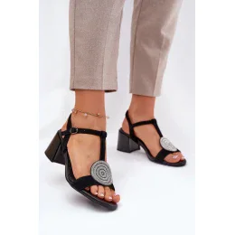 Dámske sandále z prírodnej kože, obuté na stĺpikovom podpätku, ktoré spájajú eleganciu s pohodlím. Zapínajú sa na pracku s nastaviteľným remienkom, čo zaručuje ideálne prispôsobenie sa nohe. Na prednej časti topánok sa nachádza ozdobný detail, ktorý priťahuje pozornosť a dodáva im výnimočný charakter. Tieto sandále budú skvelou voľbou na výnimočné príležitosti, perfektne sa hodia k šatám alebo elegantným nohaviciam.