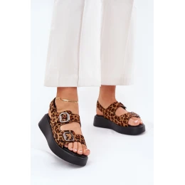 Sandały Damskie Na Platformie I Koturnie Z Klamrami Panterka Brązowe Genorre