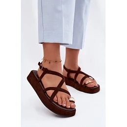 Módní dámské sandály vyrobené z příjemného na dotek eko semiše jsou skvělou volbou na teplejší dny. Stylový tvar na platformě nejenže přidává několik centimetrů výšky, ale také zajišťuje pohodlí a stabilitu při každodenním nošení. Model s pásky krásně sedí na noze, zvýrazňuje její tvar a dodává lehkost celému stylingu. Zlatý detail umístěný u prstů je elegantní akcent, který přitahuje pozornost a dodává jedinečný charakter. Měkká vložka zaručuje pohodlí při nošení i po mnoho hodin, takže model je vhodný jak na každý den, tak na letní výlety nebo dovolené. Při výběru velikosti se řiďte tabulkou velikostí.