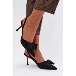 Dámske sandále z textilného materiálu sú výnimočným dizajnom na špeciálne príležitosti. Oblúkovitý podpätok krásne zvýrazňuje siluetu a špicatá špička opticky predlžuje nohy. Ozdobná mašľa v prednej časti dodáva celku ženský šarm. Tento model je ideálny na slávnostné udalosti, večierky a večerné vychádzky a predstavuje štýlový doplnok mnohých outfitov.