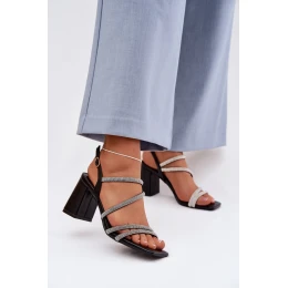 Dámske sandále na stabilnom podpätku v tvare stĺpika sú ideálnou voľbou pre ženy, ktoré ocenia pohodlie a efektný vzhľad. Model vyniká jemnými remienkami zdobenými trblietavými zirkónmi, ktoré mu dodávajú elegantný charakter a jemný lesk. Zapínanie na pracku s nastaviteľným remienkom umožňuje prispôsobiť sa chodidlu, čo zaručuje pohodlie a stabilitu pri chôdzi. Ide o štýlové sandále, ktoré sa skvele hodia na svadby, večerné vychádzky, večierky alebo elegantné večere, pričom podčiarkujú výnimočnosť štýlu.