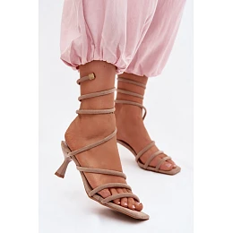 Dámske sandále z eko-semišu sú ideálnou voľbou na večerné vychádzky a slávnostné udalosti, ako sú svadby alebo večierky. Ich ženský a štýlový dizajn dokonale podčiarkne jedinečný charakter každého outfitu. Model je umiestnený na štíhlom podpätku. Charakteristickým prvkom je efektný remienok obopínajúci chodidlo, ktorý dodáva celkovému vzhľadu zmyselnosť a módnosť a zaručuje pohodlné nosenie. Je to skvelá kombinácia elegancie, pohodlia a moderného vzhľadu ideálna pre ženy, ktoré chcú vyzerať výnimočne a štýlovo.