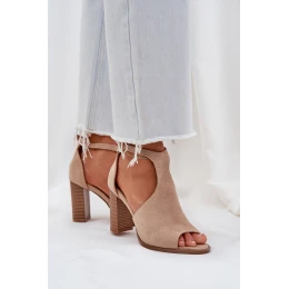 Sandały Na Słupku Z Eko Zamszu Beżowe Lanadriena