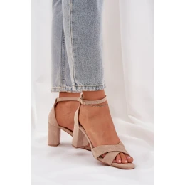 Sandały Na Słupkowym Obcasie Z Eko Zamszu Beżowe Saniffia