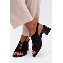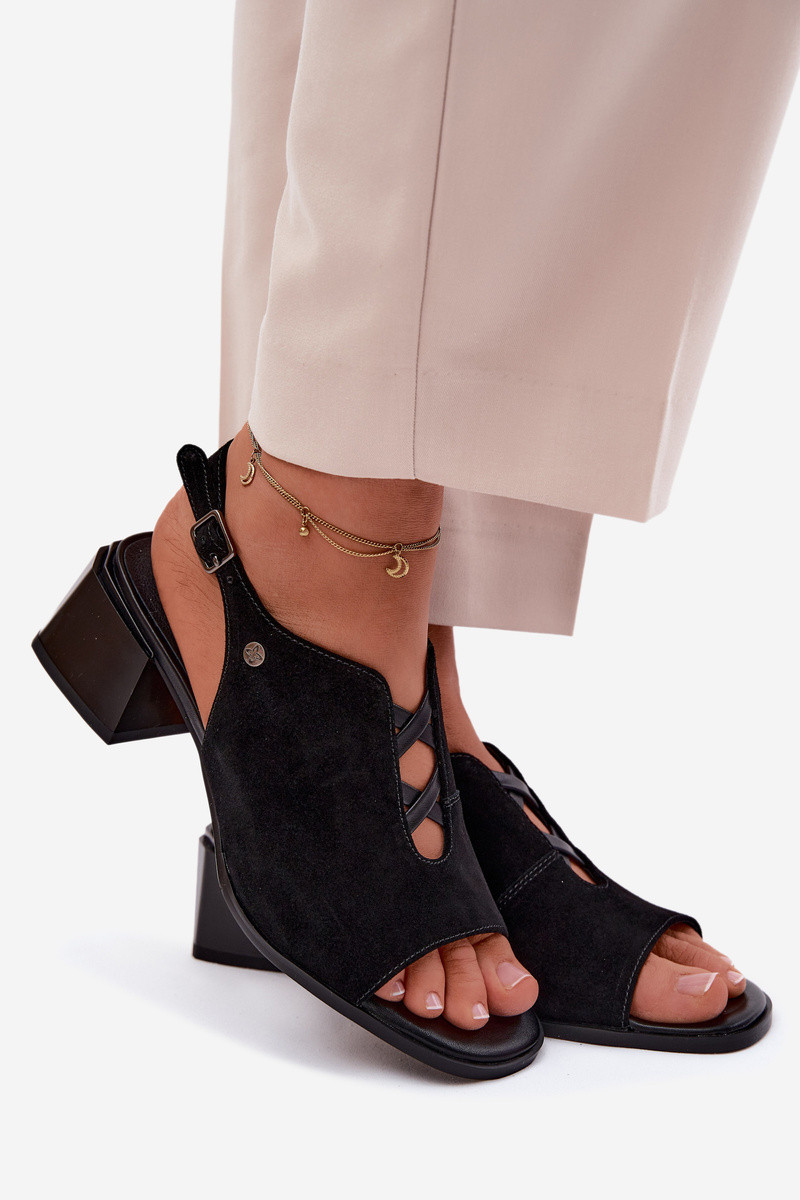 Sandály z přírodního semiše na podpatku Maciejka K7521-01 Černé