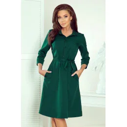 SANDY - Dámske rozšírené košeľové šaty v fľaškovo zelenej farbe 286-1