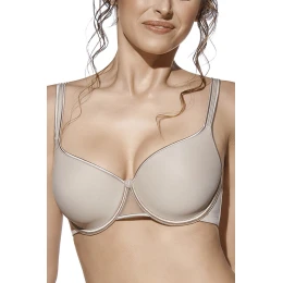 Usztywniany biustonosz Selene Sara łączy stabilne podtrzymanie z codziennym komfortem. Profilowane miseczki z fiszbinami modelują biust i zapewniają gładką linię pod ubraniem. Regulowane, nieodpinane ramiączka oraz zapięcie z tyłu na haftki ułatwiają dopasowanie. Metalowe elementy przy ramiączkach zwiększają trwałość produktu i jego funkcjonalność. Skład: 48% poliester, 43% poliamid, 9% elastan.