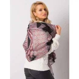 Šedá a bordó šála s potiskem.