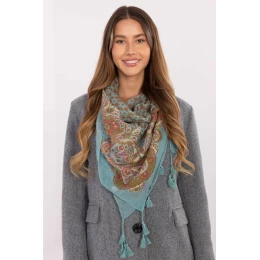 Táto šatka so zaujímavou potlačou a lemovaním je módnym a všestranným doplnkom, ktorý dodá charakter každému outfitu. Nápaditý vzor priťahuje pozornosť a oživí jednoduché aj klasické kombinácie. Štvorcový formát 110 × 110 cm umožňuje šatku voľne štylizovať rôznymi spôsobmi - nosiť ju okolo krku, cez plecia, ako šatku na rameno alebo ako doplnok k taške. Lemovanie strapcami dodáva ľahkosť a jemný boho charakter, takže je ideálnou voľbou na každodenné aj výnimočné príležitosti.