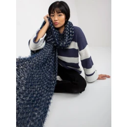 Šedá a tmavomodrá pletená dámska zimná šatka .