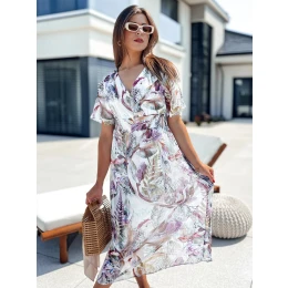 Wyjątkowa sukienka MIDI ARABELLA w modny kwiecisty wzór to absolutny MUST HAVE w każdej letniej garderobie. Przepięknie wycięty dekolt na zakładkę prezentuje się bardzo kobieco, a falbany przy rękawach nadają delikatności i lekkości. Model posiada delikatną podszewkę oraz gumkę w pasie, która perfekcyjnie wyeksponuje talię. To zdecydowanie idealny wybór do stworzenia fantastycznych stylizacji na większe i mniejsze okazje. Dodaj sukienkę ARABELLA do swojej kolekcji i ciesz się jej urokiem każdego dnia!